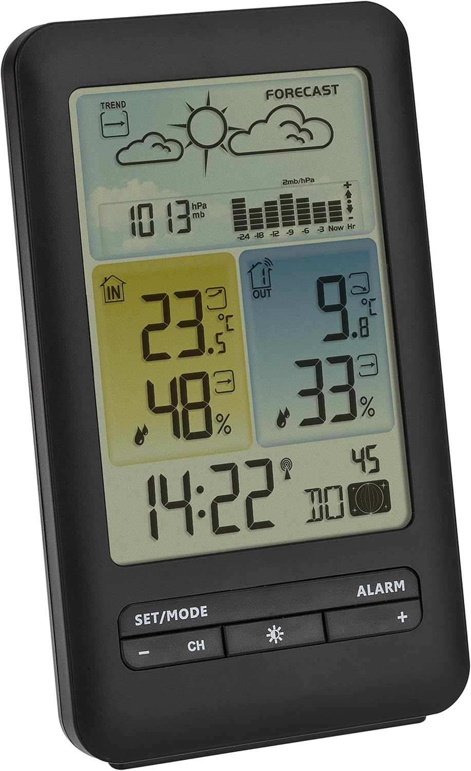 ![]() | TFA Dostmann Radiowa stacja pogodowa, 35.1165.01, prognoza pogody z symbolami, ciśnienie powietrza z grafiką, faza księżyca, wraz z czujnikiem zewnętrznym, wartości maks. min., Amazon Exclusiv, czarna | 59.4 zł | B09XFD49NZ | 4009816038296 |